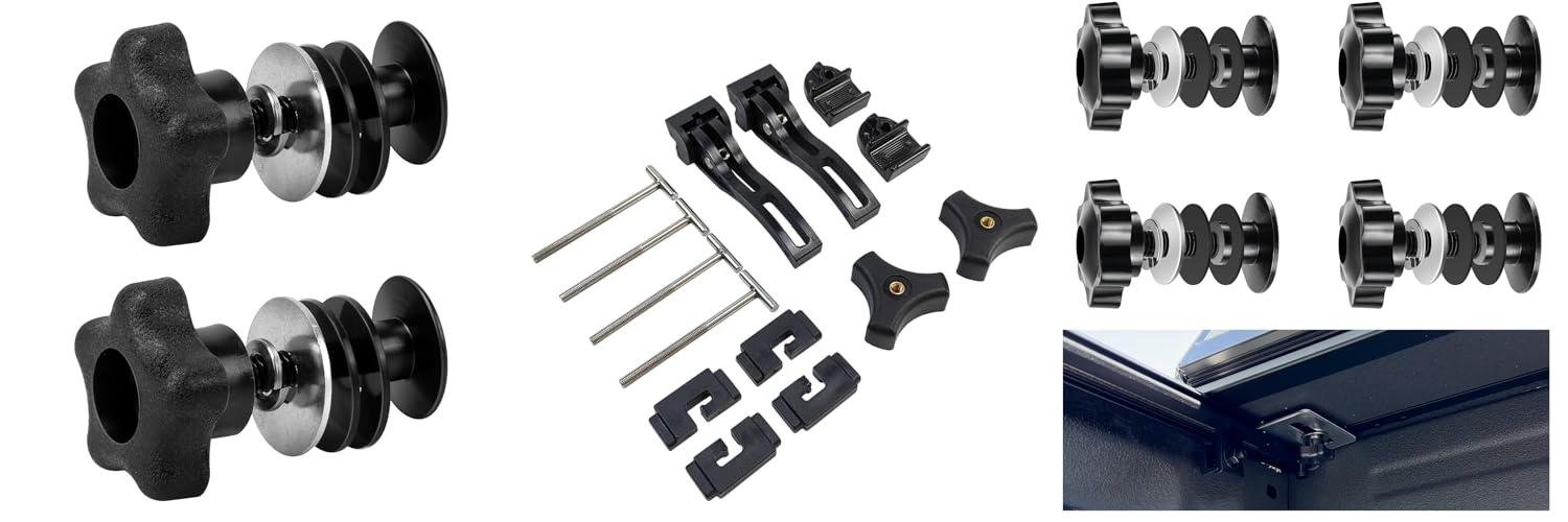 Is your truck bed cover missing a piece or need a refresh? This Truck Tonneau Cover Replacement Installation Accessory is here to help. It’s designed to work with tri-fold and quad-fold truck bed covers, whether they are hard folding or soft folding. This kit includes everything you need to get your cover secured properly. You get front clamps, rear clamps, and T-bars, also known as T-bolts. These parts are made from strong plastic and aluminum, so they will last a long time and keep your cover stable.