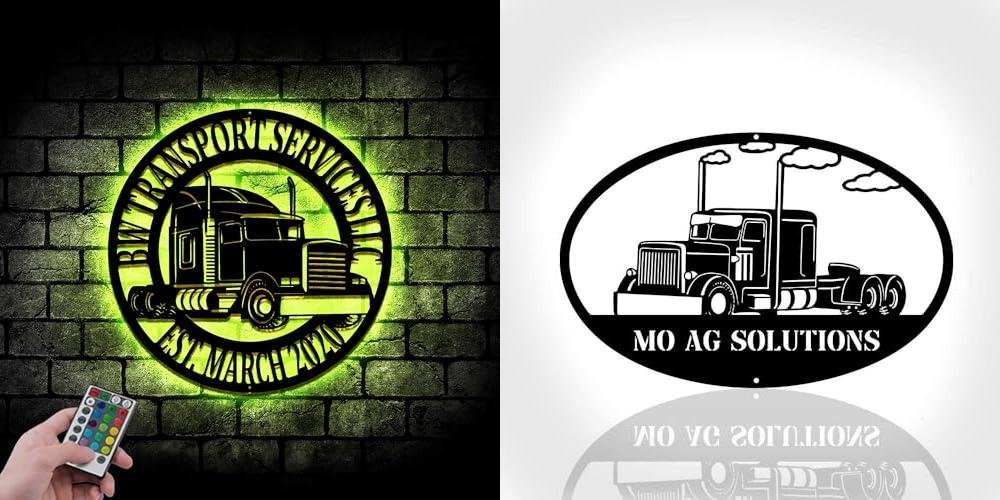 1. Personalized Trucking Company Business Custom Metal Sign with LED Light 8×8 inches Black Power Coated Garage Home Decor Housewarming Gift Birthday Christmas Gift (style 29)